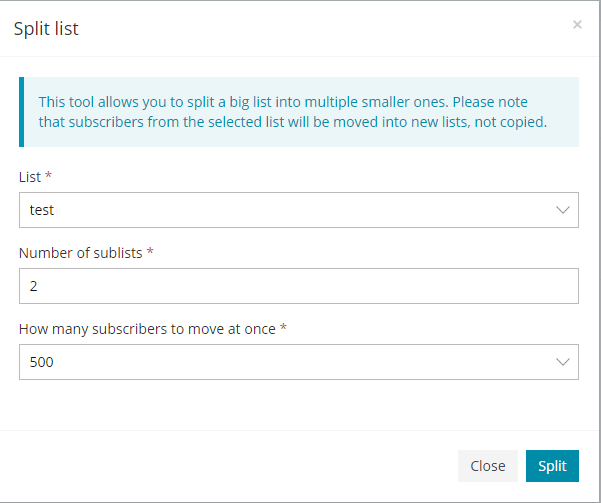 Used for the split of your contacts/subscribes multiple smaller lists.